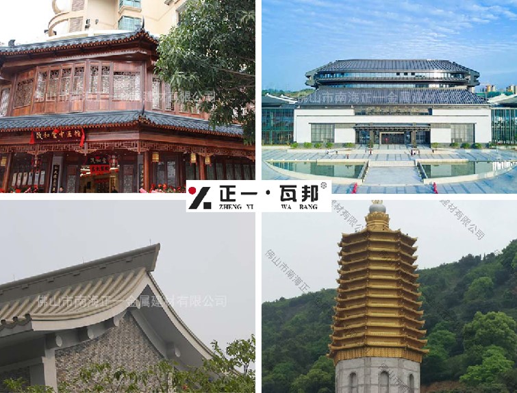 以廣東佛山正一金屬建材為代表的鋁瓦產(chǎn)品,憑借吸音降噪、防火阻燃、防腐耐候、保溫隔熱、便捷打理、安裝便捷、抗壓抗裂、防風(fēng)防震等八大優(yōu)勢(shì),被廣泛應(yīng)用于學(xué)校、展館、商業(yè)中心、酒店、醫(yī)院、別墅、小區(qū)、寺廟等場(chǎng)所的屋面裝飾,不斷推動(dòng)著我國千年屋面瓦文化的傳承、創(chuàng)新和發(fā)展,并成功打造了眾多優(yōu)秀的金屬鋁瓦工程案例。