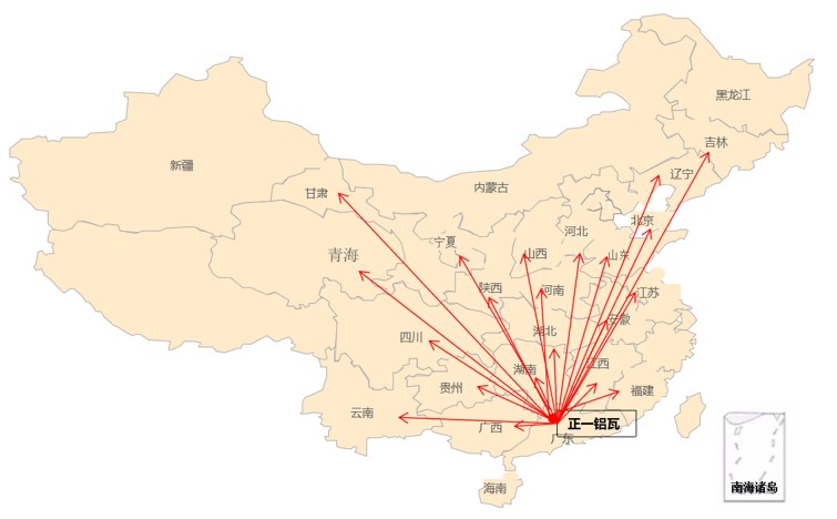 (佛山正一鋁瓦全國輻射區(qū)域)